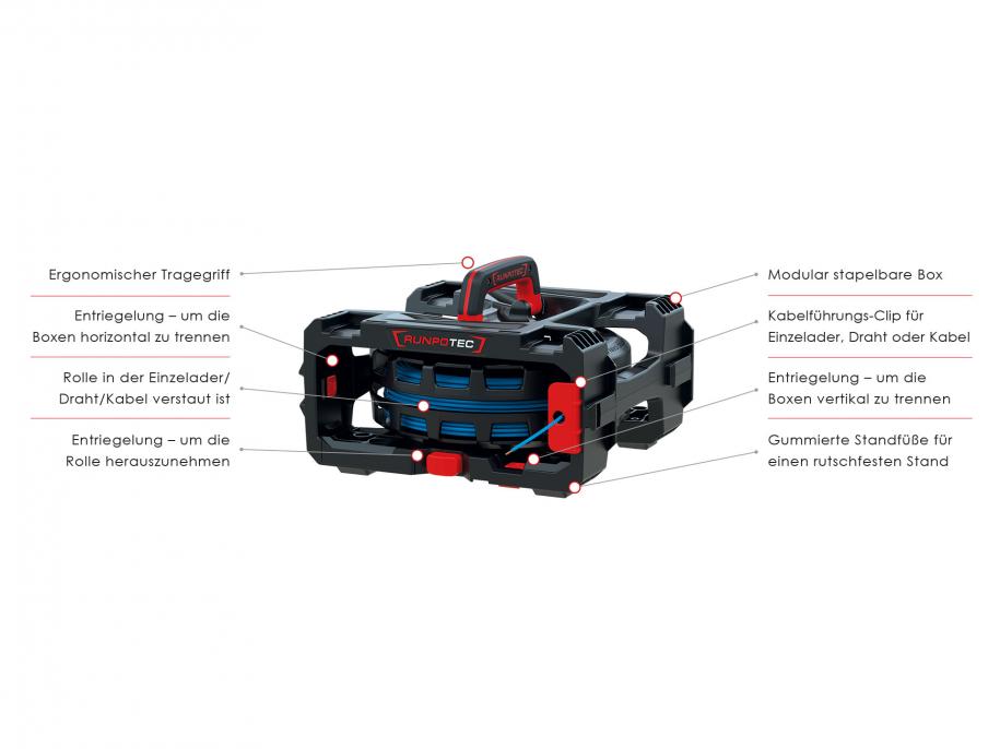 Der schnelle Rollenwechsel und die benutzerfreundliche Handhabung machen die CB 260 Cable Box zu einem unverzichtbaren Werkzeug für alle, die Wert auf eine effiziente und gut organisierte Kabelverwaltung legen.