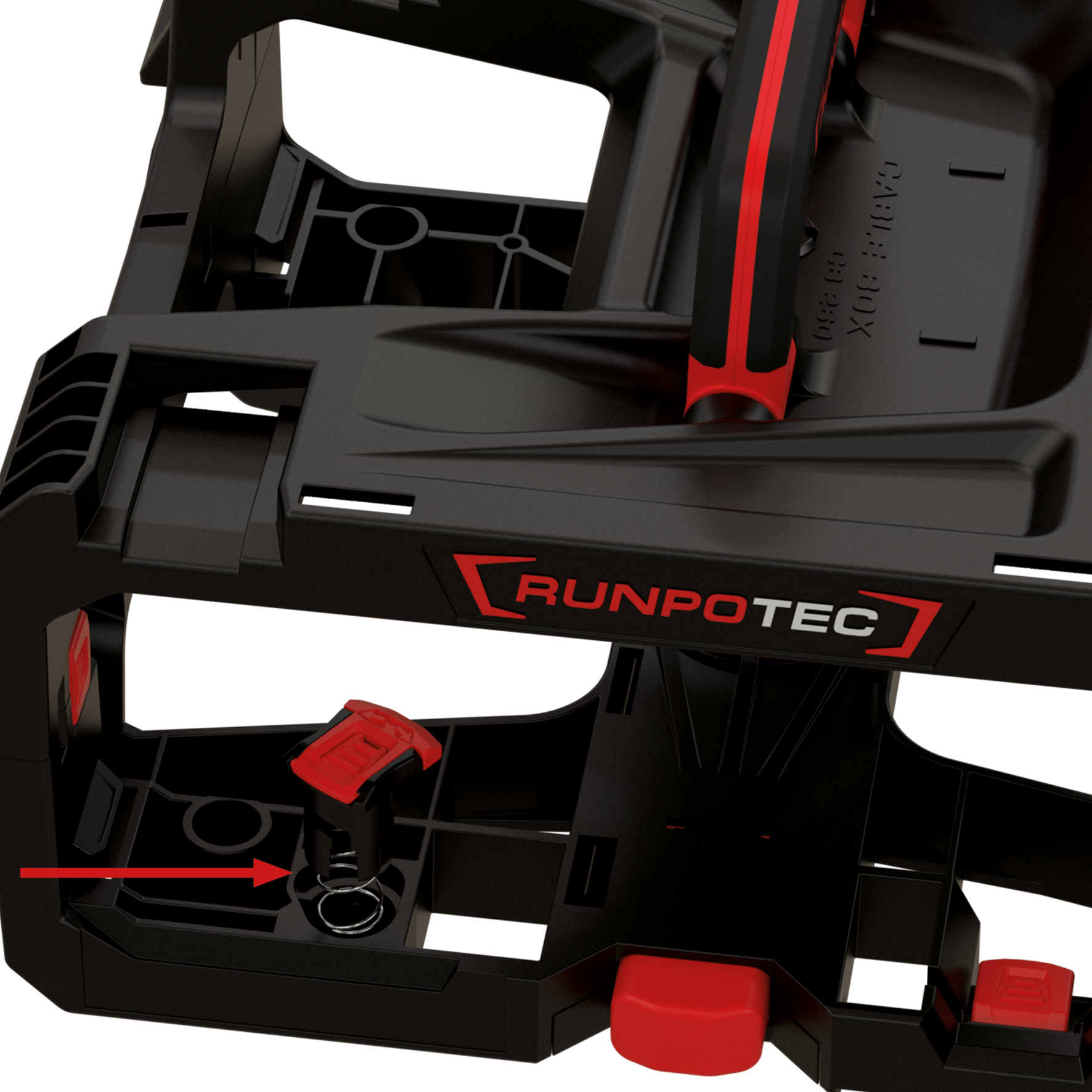 Die CB 260 Nachlaufbremse dient zur kontrollierten Abbremsung der Kabelrolle und verhindert ein unkontrolliertes Auslaufen von Kabeln bzw. Einzeladern – sowohl im Einsatz als auch beim Transport. Die Bremse wird durch Drücken und eine Rechtsbewegung aktiviert. In diesem Zustand wird die mit Kabel oder Einzeladern befüllte Rolle zuverlässig gebremst und die Abrollgeschwindigkeit reduziert. Zum Deaktivieren genügt Drücken und eine Linksbewegung, wodurch die Rolle wieder freiläuft. Der rote Bremsbelag arbeitet mit Anpressfunktion, ist als Verschleissteil ausgelegt und kann bei Bedarf problemlos gewechselt werden. Ein zweiter roter Wechseleinsatz ist im Lieferumfang enthalten. Der Austausch erfolgt ohne Demontage der Nachlaufbremse: Mit einem schmalen Schlitzschraubendreher den Einsatz leicht anheben, in Pfeilrichtung verschieben und entnehmen.