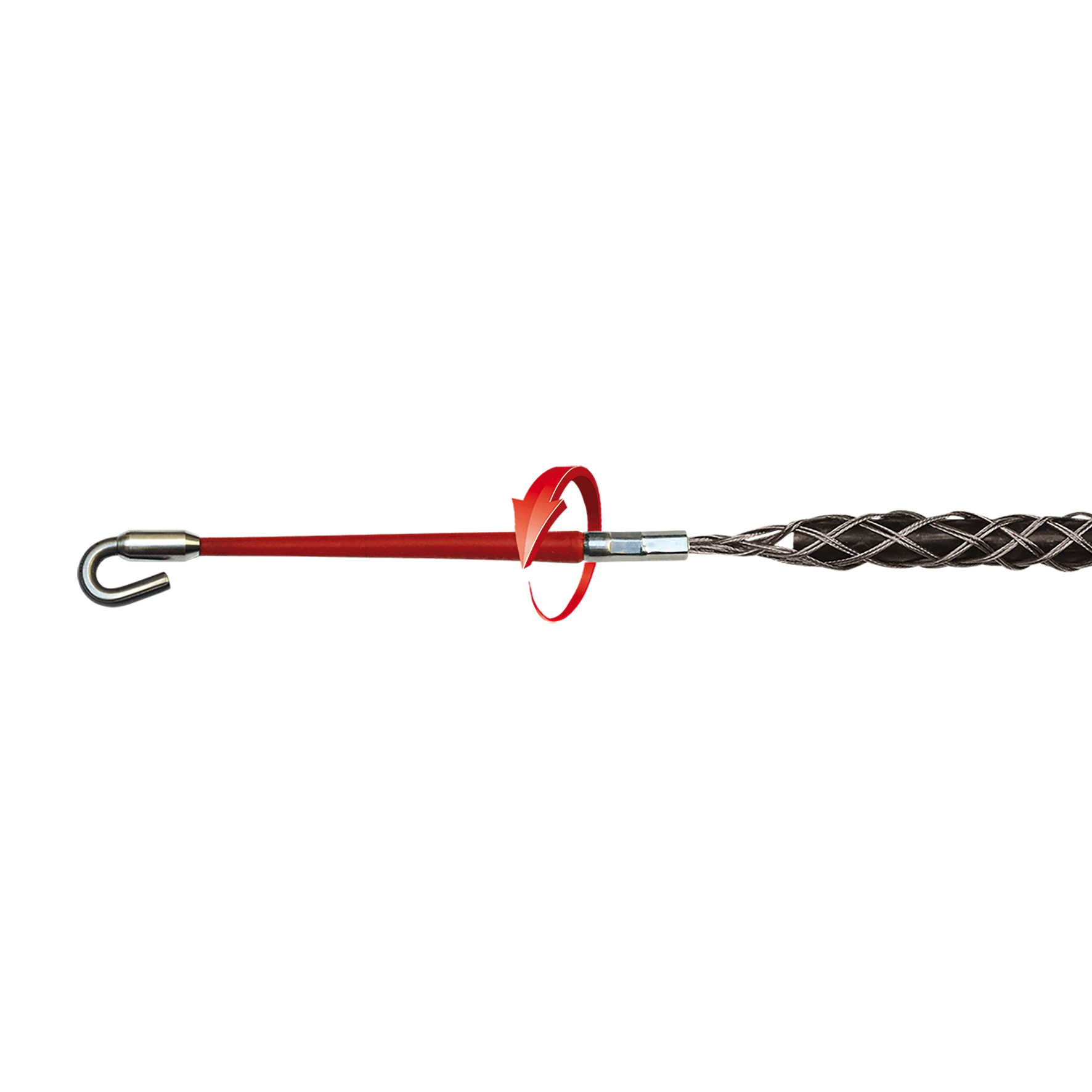Le chaussette de tirage de câble brevetée avec fermeture rapide dispose d'un compensateur de torsion intégré qui compense la torsion du câble dans le tube et ménage ainsi considérablement le système d'insertion, la chaussette de tirage et le câble. La fermeture rapide, un crochet de forme ergonomique, permet un accrochage et un tirage en quelques secondes et évite les opérations fastidieuses de vissage et de dévissage. La charge de rupture totale de 200 kg a été testée sur le crochet, les pressions de connexion, le compensateur de torsion et la tresse en acier inoxydable du tire-câble. Le crochet, les raccords et la gaine tressée sont fabriqués en acier inoxydable de haute qualité, ce qui garantit l'absence de rouille et une longue durée de vie du tire-câble. Au lieu de deux tire-câbles conventionnels, le tire-câble à fermeture rapide suffit. Compatible avec RP5, RP1, tiges en fibre de verre GF3 - GF6 et RUNPOSTICKS