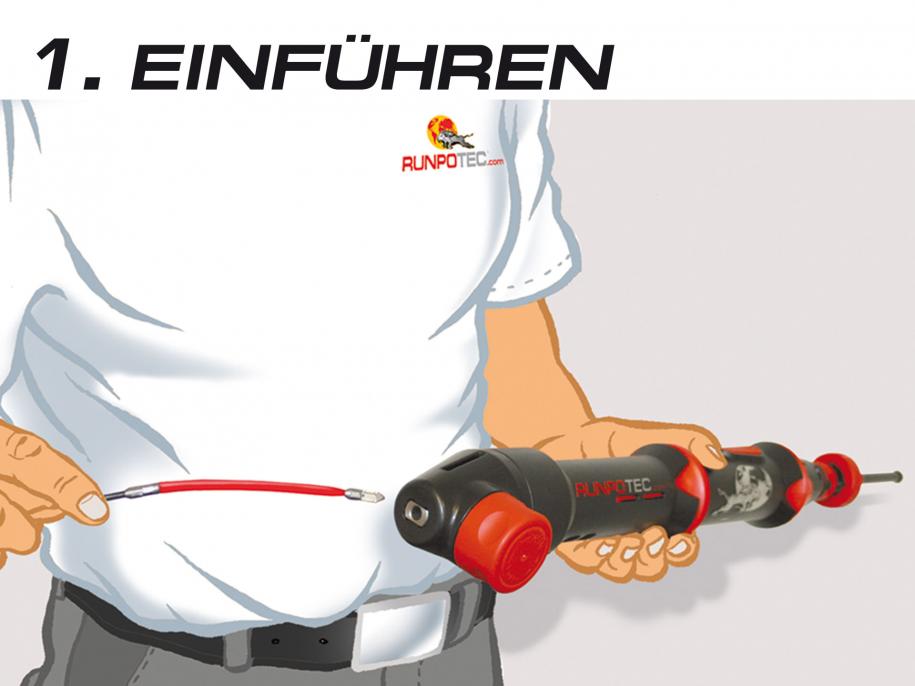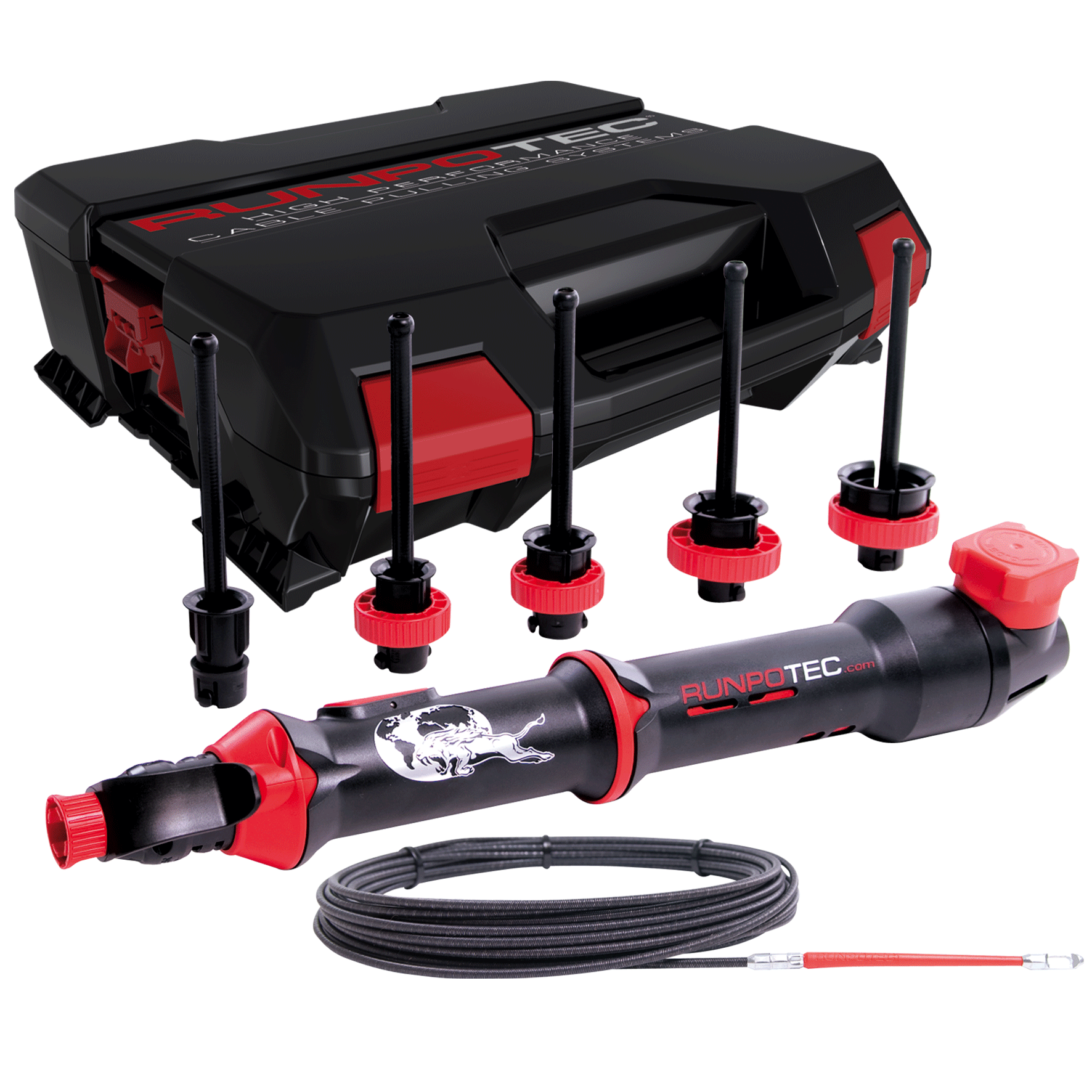 Revolutionäres Kabeleinzugssystem - ein absoluter Problemlöser mit patentierter Durchschlagskraft. Der RT 2008 kann nur in Kombination mit der RUNPOGLEITER Spirale MET verwendet werden. Durch die integrierten Klemmbacken und der Teleskopstange ermöglicht der RT 2008 einen unvergleichbaren Vorschub der Spirale. Durch die geradlinige Führung kann die eingesetzte Muskelkraft direkt auf die Einziehspirale übertragen werden. Zusätzlich kann die RUNPOGLEITER Spirale MET mittels der dritten Klemmung und dem Ratschen-Griff in Drehung versetzt werden. Das ermöglicht auch bei engen Radien und längeren Distanzen einen kontinuierlichen Vorschub. Ab Längen von 20 m empfiehlt RUNPOTEC die Unterstützung durch eine Akkubohrmaschine. Optimales Einsatzgebiet: für Rohrdimension 16 mm - 32 mm ANWENDUNGSFILM: Einen kurzen, sehr informativen Anwendungsfilm können Sie durch Scannen des QR-Codes oder auf www.runpotec.com ansehen. Lieferumfang: 1 x RT 2008 Basisgerät, 1 x Steckaufsatz Ø 20 mm, 1 x Steckaufsatz Ø 25 mm, 1 x Steckaufsatz Ø 32 mm, 1 x Steckaufsatz Ø 40 mm, 1 x Steckaufsatz Dose flexibel, 2 x Steckkupplung, 1 x Gürtelclip, 1 x RUNPOGLEITER Spirale MET 15 m, 1 x RUNPOTEC Systemkoffer