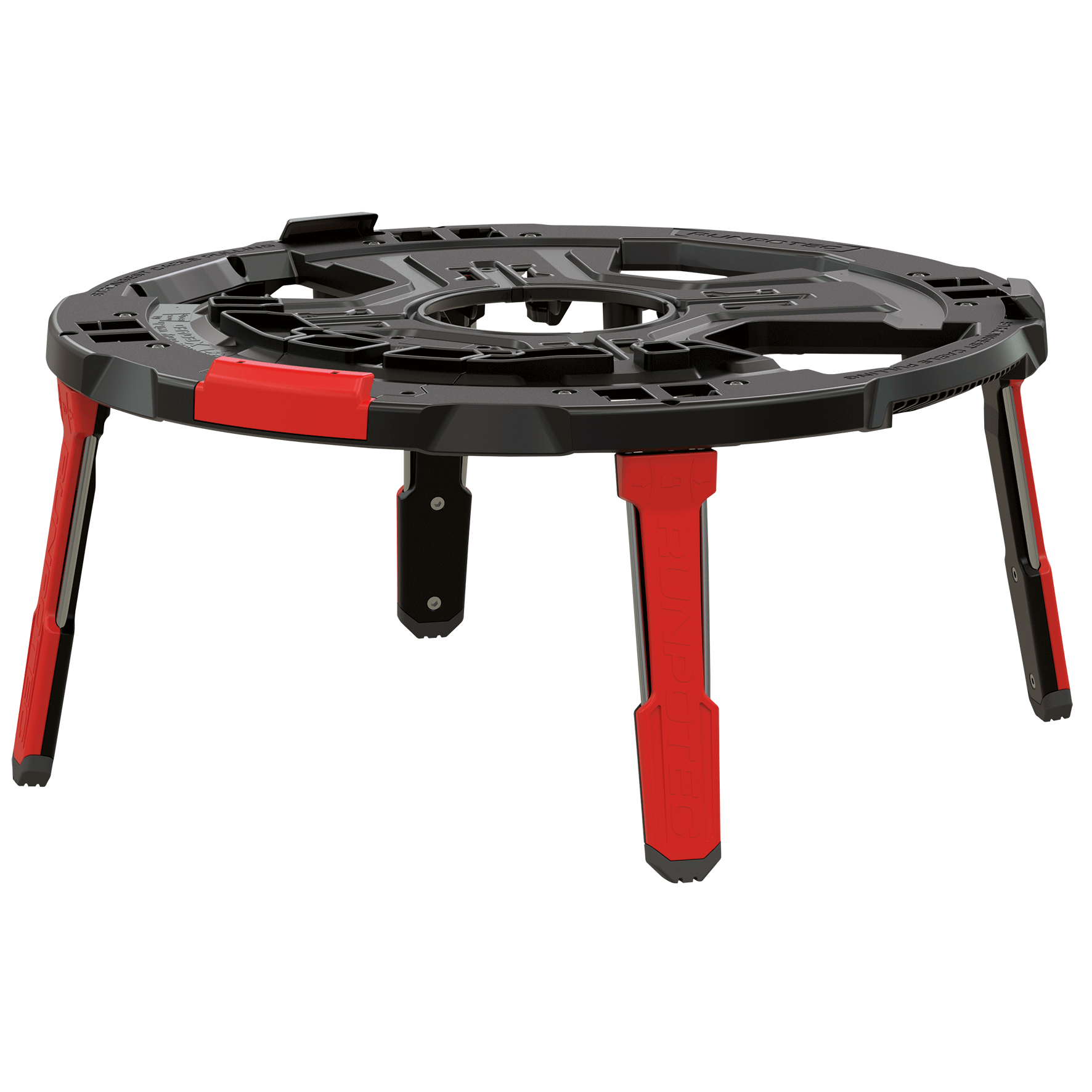 Die XB 500 APF - Adapterplatte - Füße kann mit dem XB 500 oder XB 500 T Profi-Kabelabroller verbunden werden. Dies ermöglicht ein optimales Ab- und Aufrollen von Rohr- oder Kabelbünden bzw. Kabeltrommeln auf stahlarmierten Betondecken in der Bauphase. Die Adapterplatte kann durch Fixierhalterungen und dem auf der Unterseite befindlichen Schnellverschlusshebel zügig mit dem XB 500 oder XB 500 T verbunden und wieder getrennt werden. Die vier ausklappbaren Standfüße ermöglichen einen höheren Stand (21 cm) des XB 500 und XB 500 T auf der zu betonierenden Decke, dadurch wird ein Verrutschen verhindert bzw. ein störungsfreies Abrollen ist gegeben. In dieser Kombination ist das XB 500 und XB 500 T bis zu 80 kg belastbar. Optimales Einsatzgebiet: für optimales Ab- und Abrollen auf stahlarmierten Betonplatten. Anwendungsfilm: Einen kurzen, sehr informativen Anwendungsfilm können Sie durch Scannen des QR-Codes oder auf www.runpotec.com ansehen.