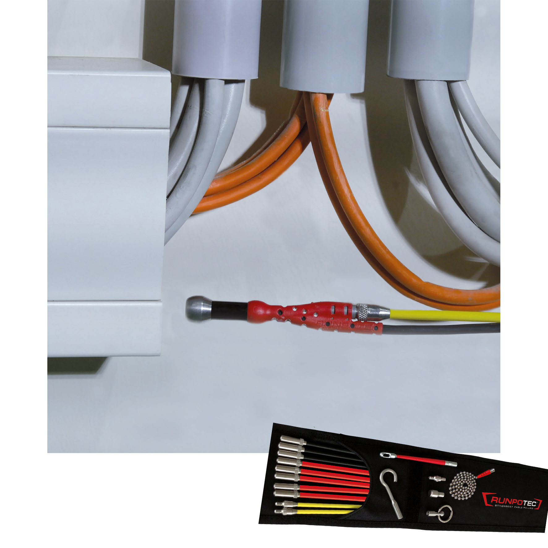 RUNPOSTICKS Package 35-parts, cable pulling aids for not guided pipelines, basalt rods,